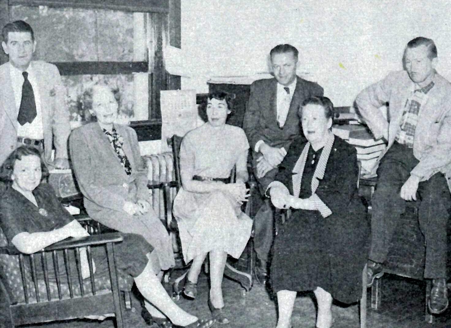 Image 1: Some Department of English faculty members, likely in the 1950s, from an ASU yearbook photo. Katharine C. Turner is seated on the far left. Back row, left to right are C.E. Southern, J.E. Zimmerman, and Fred C. Osenburg. Front row, left to right are Turner, Dana B. Burke, Mary V. Morris, and Collice Portnoff.